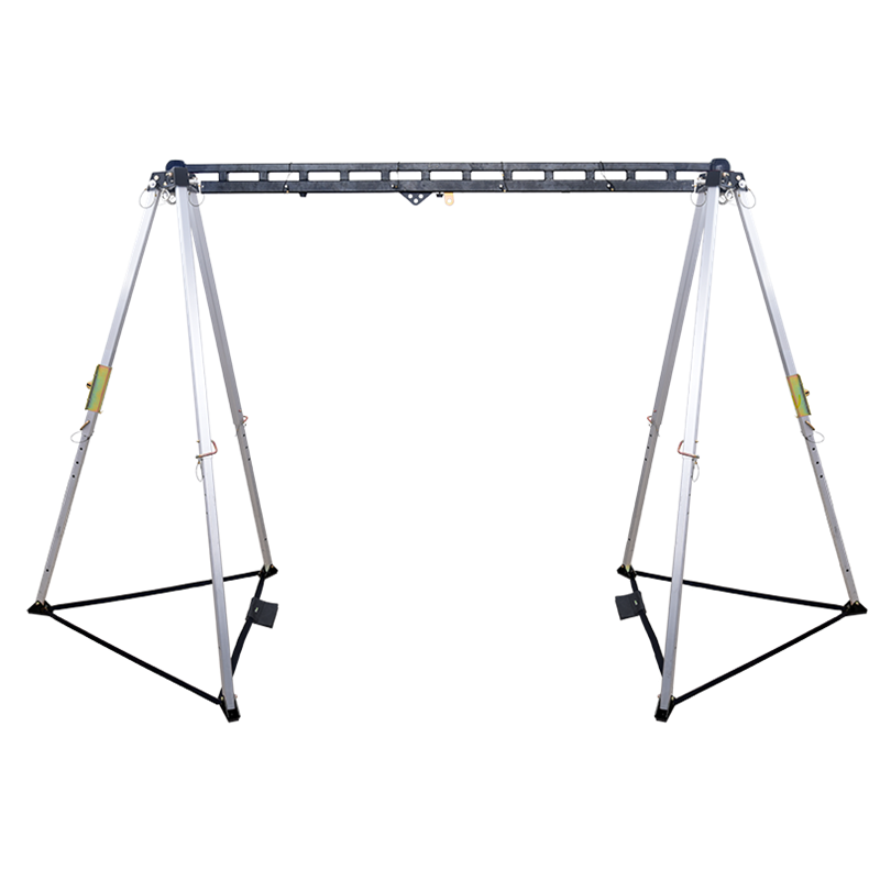 - Mit einer Seilrolle ausgestattet, die am Kopf des Dreifußes zum Durchziehen des Seils montiert ist.