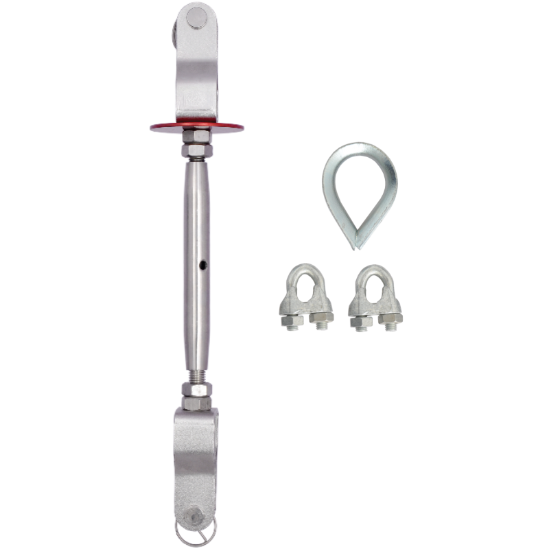 Regulates the tensioning of cable (tension about 80 daN) by simple rotation.